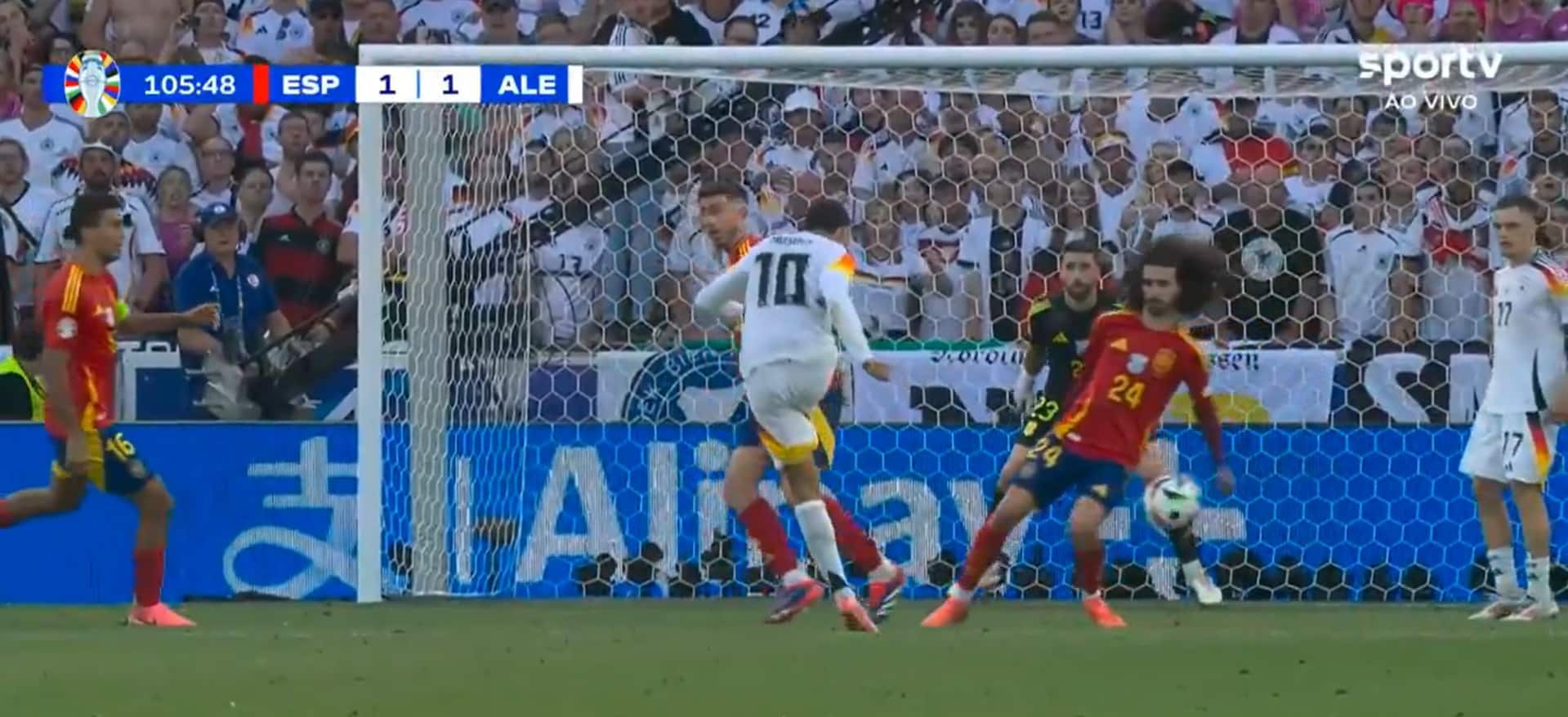 A participação da Alemanha na Eurocopa se encerrou de forma polêmica. A anfitriã perdeu para a Espanha por 2 a 1 e deu adeus ao torneio nas quartas de final da competição. No entanto, um dos principais lances do jogo foi bastante polêmico.