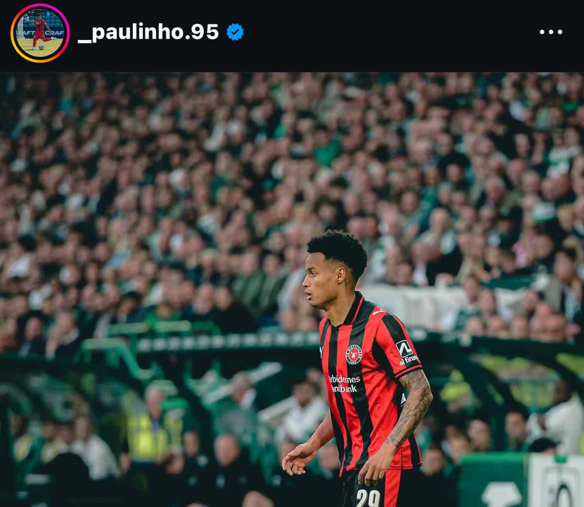 Eduardo Statuti28/11/2025Lateral Paulinho marca contra a Roma e alcança temporada mais artilheira pelo Midtjylland