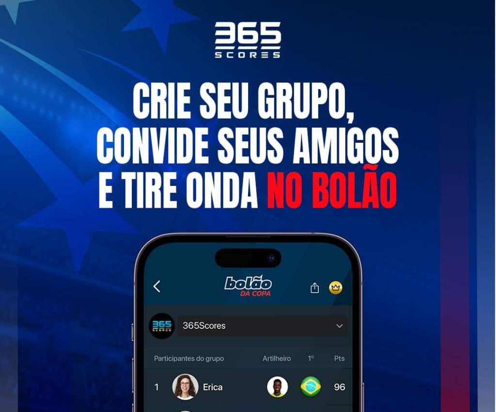 Para você jogar, é bastante fácil: abra o app 365Scores no celular ou na web (https://pyg49.app.goo.gl/Vp7Z43PW6iX35vLo8) e entre no bolão que aparecerá na sua tela inicial. Caso feche por engano, o bolão também pode ser encontrado no menu MAIS do app 365Scores.