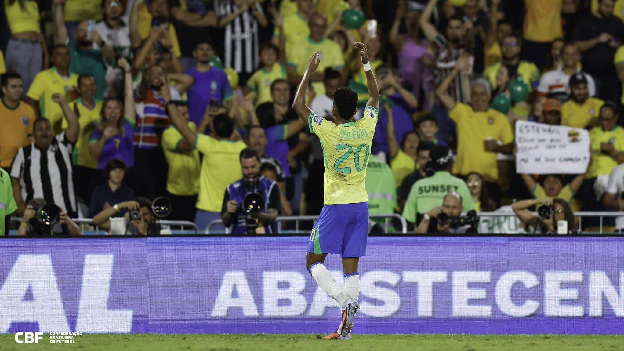 No provável último jogo da Seleção no Brasil antes da Copa do Mundo, Estêvão marcou seu primeiro gol com a…