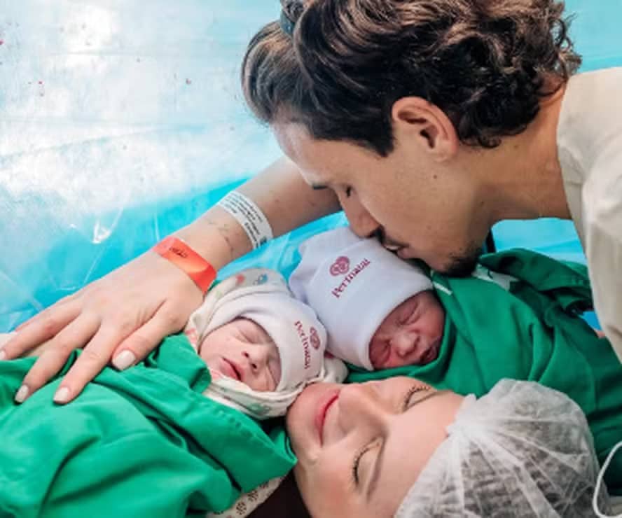 “Isabela e Antônia – 12/08/2024. O dia que o Senhor reservou para nos dar essas duas bençãos. Vocês são promessas de Deus. Até aqui nos ajudou o Senhor 🙏🏼🤍. Desde que nasci fui entregue a ti; desde o ventre materno és o meu Deus. Salmos 22:10”, escreveu Pedro.