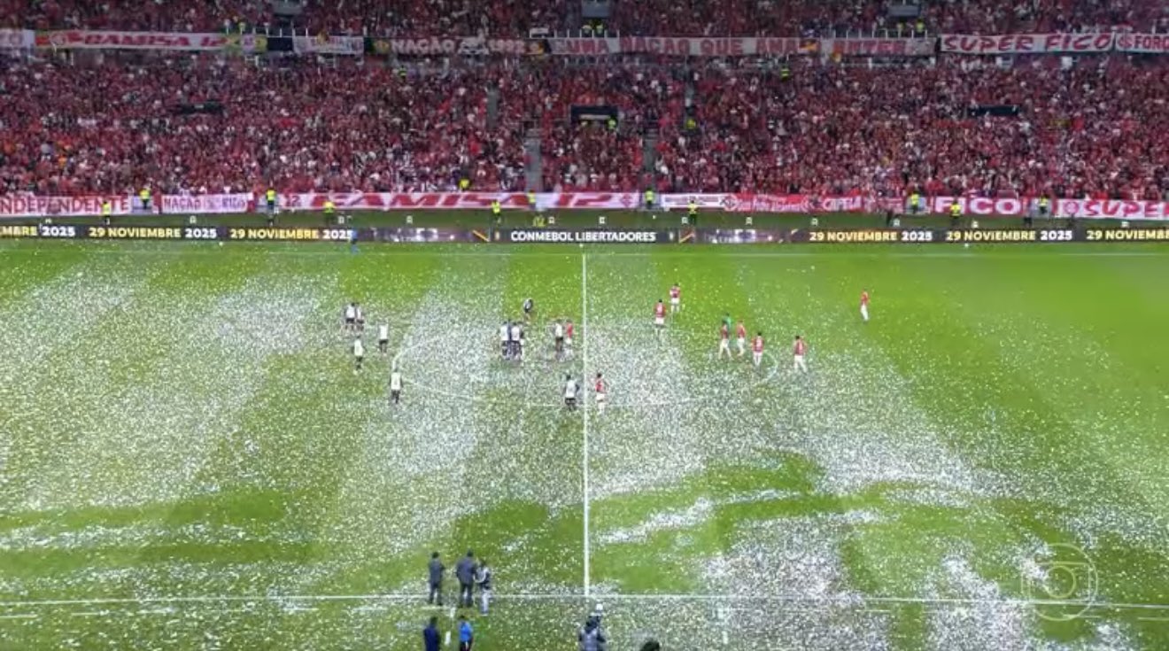 Fellipe Perdigão20/08/2025Jogo entre Inter e Flamengo é atrasado por papéis picados no gramado